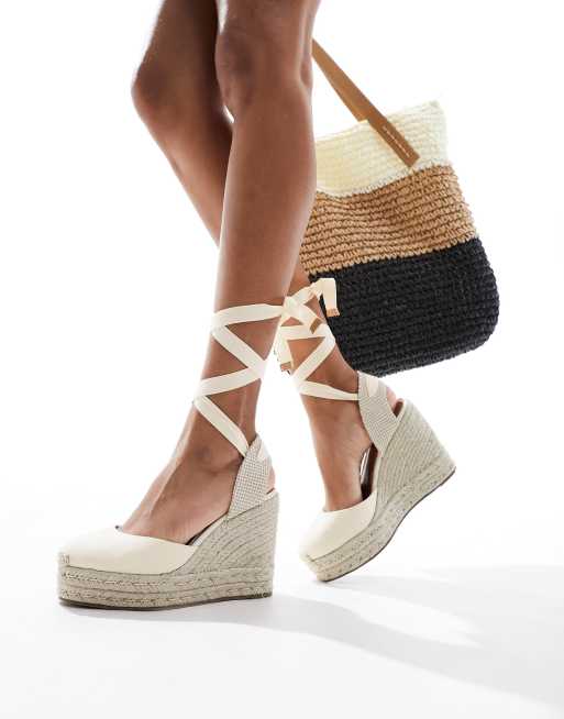 ASOS DESIGN - Tyra - Chaussures compensées à bout fermé en lin naturel