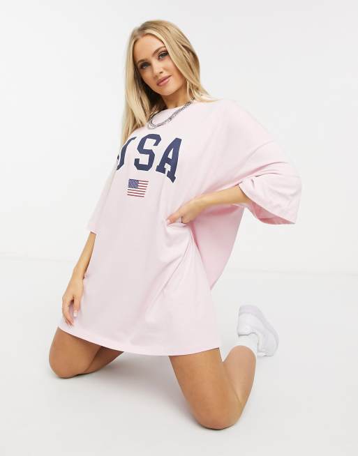 ASOS DESIGN - USA - Robe t-shirt oversize à logo - Vieux rose