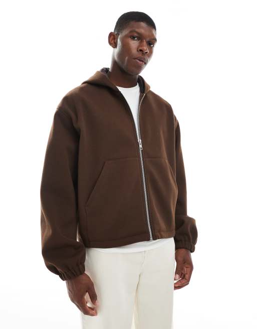 ASOS DESIGN - Veste à capuche oversize aspect laine - Marron