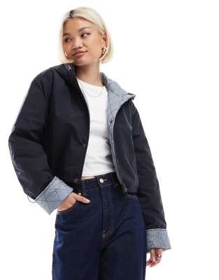 ASOS DESIGN - Veste courte à capuche avec doublure à carreaux vichy - Bleu marine