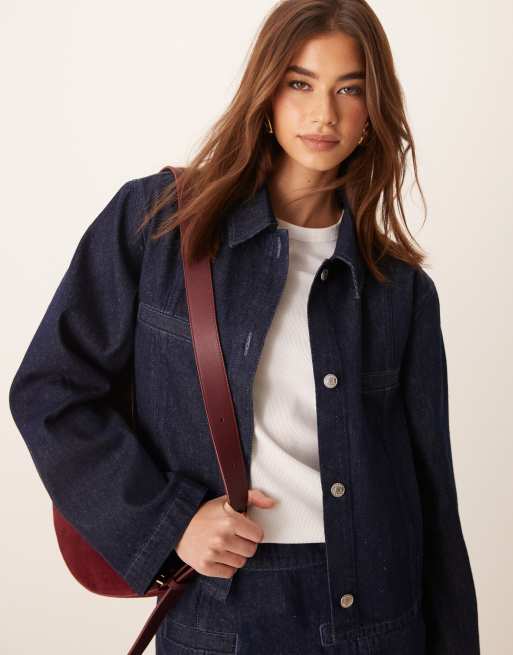 ASOS DESIGN - Veste courte en jean coupe carrée - Indigo