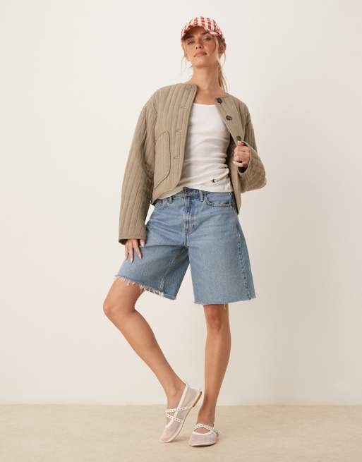 ASOS DESIGN - Veste courte matelassée sans col en lin mélangé - Kaki