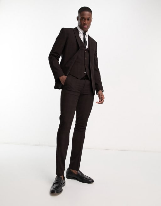 ASOS DESIGN - Veste de costume ajustée à carreaux - Bordeaux