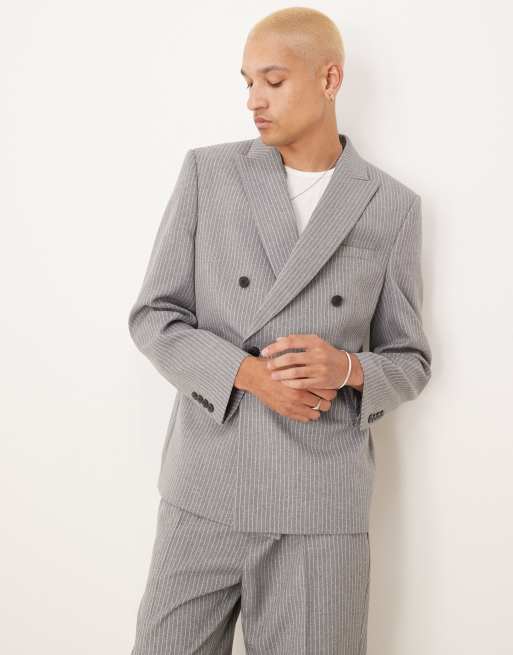 ASOS DESIGN - Veste de costume ajustée à double boutonnage et fines rayures - Gris