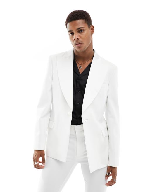 ASOS DESIGN - Veste de costume ajustée avec revers en satin exagérés - Blanc