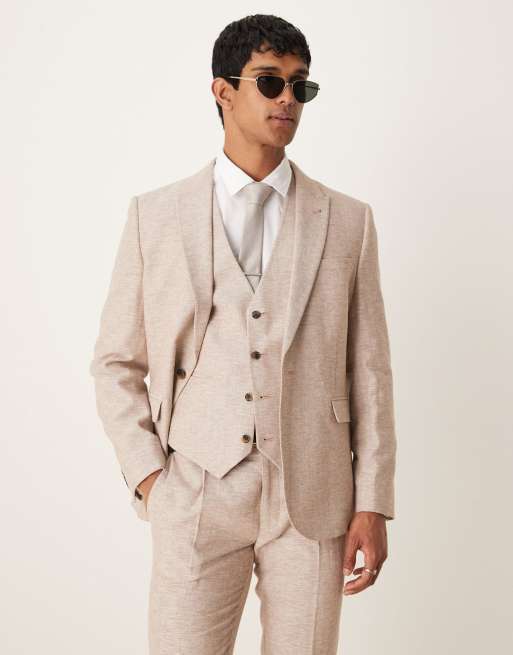 ASOS DESIGN - Veste de costume ajustée en coton et lin à chevrons - Marron