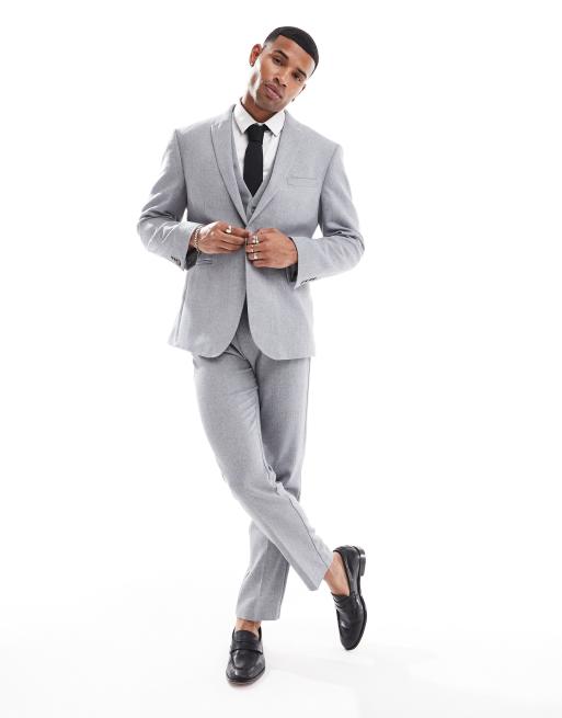 ASOS DESIGN - Veste de costume ajustée en laine mélangée à maille nattée - Gris