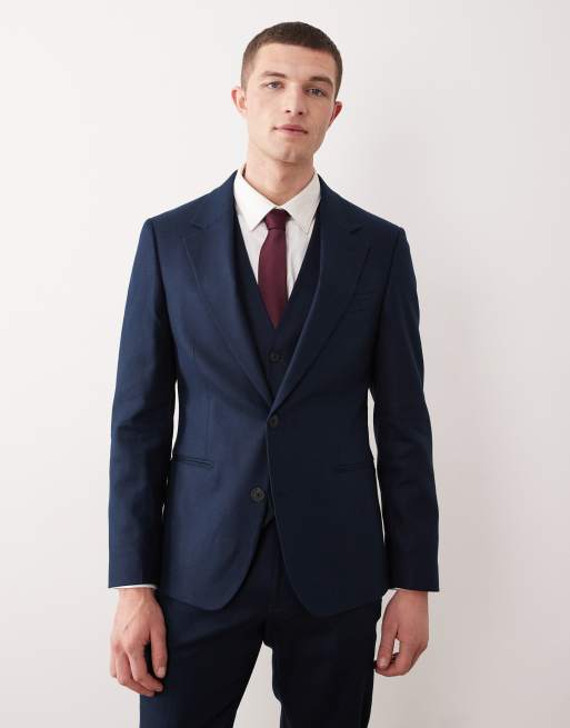 ASOS DESIGN - Veste de costume ajustée en lin majoritaire - Bleu marine