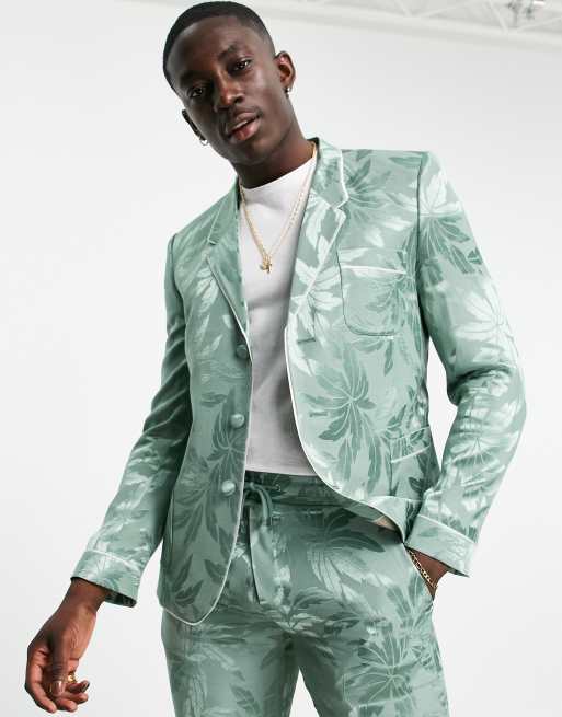 ASOS DESIGN - Veste de costume ajustée style pyjama en satin à imprimé fleuri - Vert