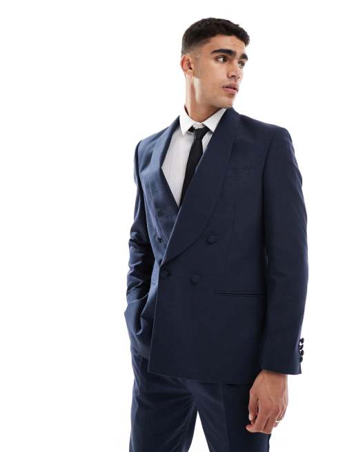 ASOS DESIGN - Veste de costume classique en lin et coton - Marine