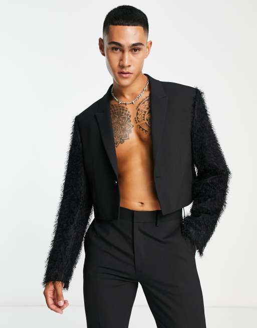 ASOS DESIGN - Veste de costume courte avec manches duveteuses - Noir