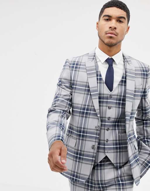 ASOS DESIGN - Veste de costume slim - Gris à carreaux oversize