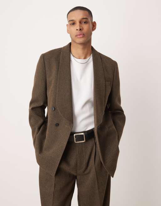 ASOS DESIGN - Veste de costume standard en laine avec double boutonnage et chevrons - Marron
