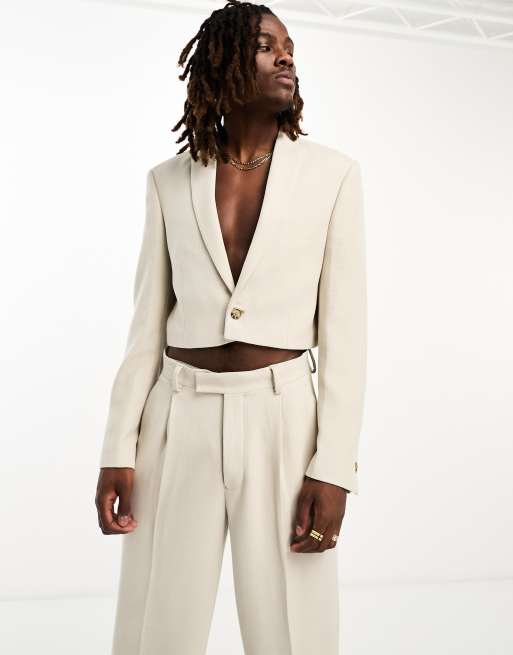 ASOS DESIGN - Veste de costume ultra courte ajustée en jersey texturé - Beige