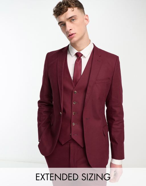 ASOS DESIGN - Veste de costume ultra skinny en lin mélangé - Bordeaux