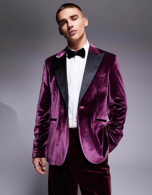 ASOS DESIGN - Veste de smoking ajustée en velours - Bordeaux