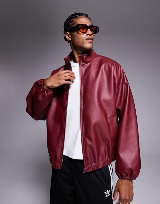 ASOS DESIGN - Veste de survêtement imitation cuir - Bordeaux