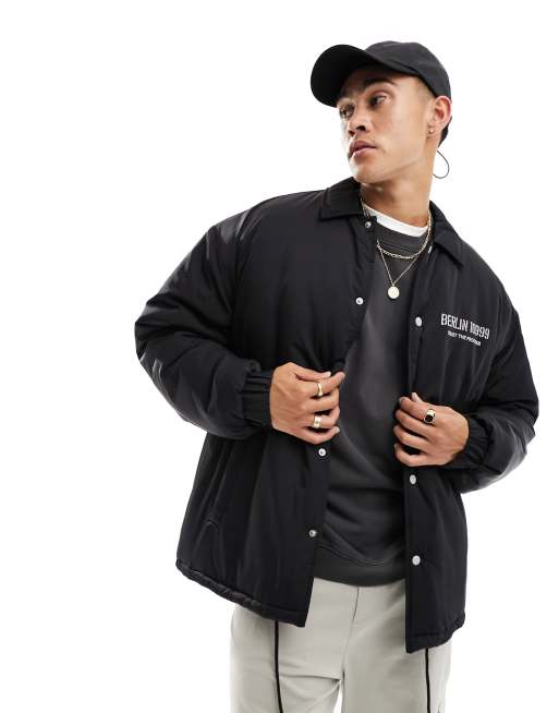 ASOS DESIGN - Veste d'entraîneur oversize en nylon avec imprimé au dos - Noir et blanc