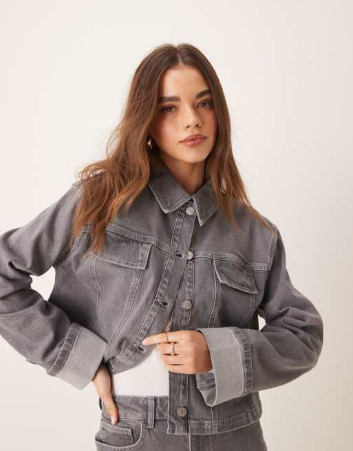 ASOS DESIGN - Veste en jean à revers - Gris délavé