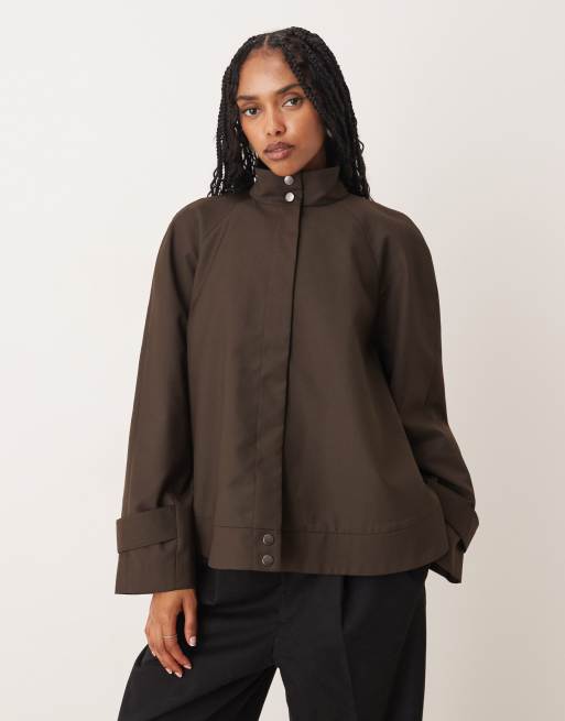 ASOS DESIGN - Veste évasée habillée à col montant et manches raglan - Chocolat
