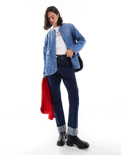 ASOS DESIGN - Veste matelassée en denim - Bleu délavé moyen