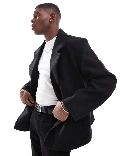 ASOS DESIGN - Veste oversize aspect laine - Noir
