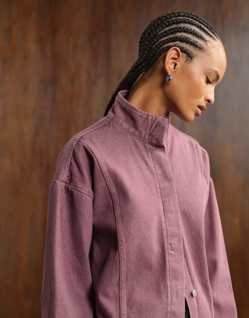 ASOS DESIGN - Veste oversize en jean à col cheminée - Rose