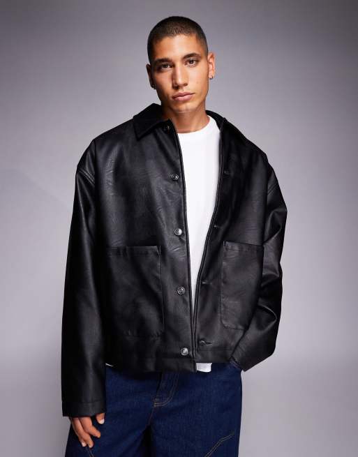 ASOS DESIGN - Veste oversize en similicuir avec col en velours côtelé - Noir