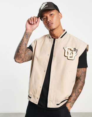 ASOS DESIGN - Veste sans manches universitaire aspect laine - Beige