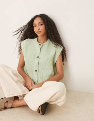 ASOS DESIGN - Veston boutonné coupe carrée en maille surpiquée - Pistache