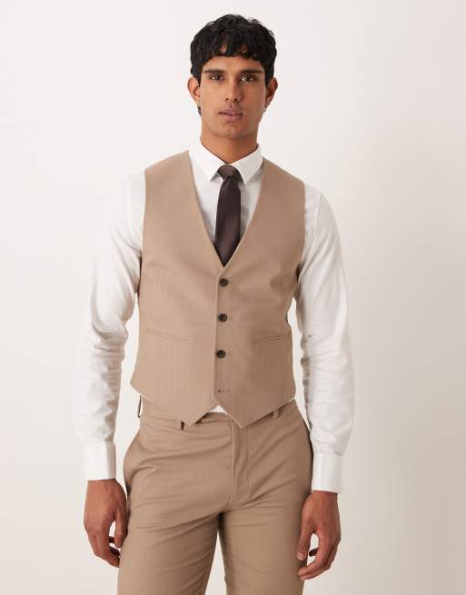 ASOS DESIGN - Veston de costume ajusté à chevrons - Taupe