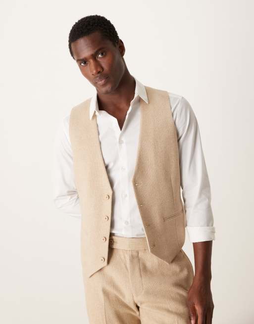 ASOS DESIGN - Veston de costume ajusté en laine à mini motif pied-de-poule - Beige