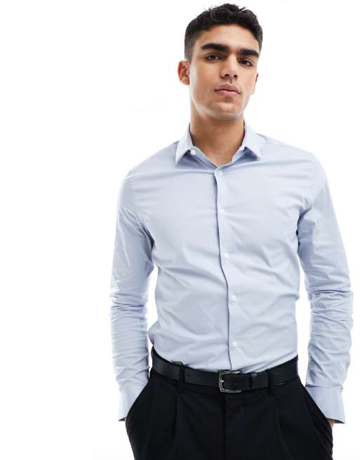 ASOS DESIGN Wedding - Chemise ajustée en popeline - Bleu pâle