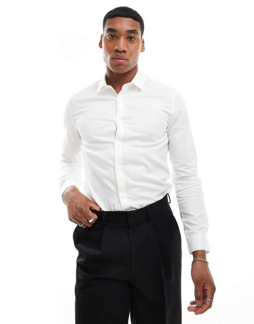 ASOS DESIGN Wedding - Chemise ajustée habillée et texturé à chevrons - Blanc