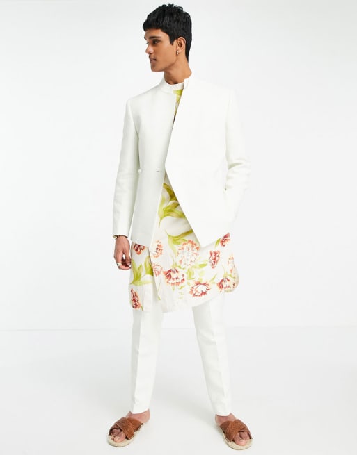 ASOS DESIGN Wedding - Costume ajusté en jacquard - Blanc