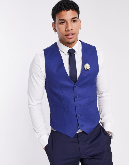 ASOS DESIGN Wedding - Costume ajusté en lin mélangé - Bleu marine