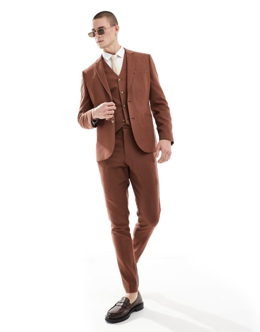 ASOS DESIGN Wedding - Costume ajusté en lin micro-texturé - Marron