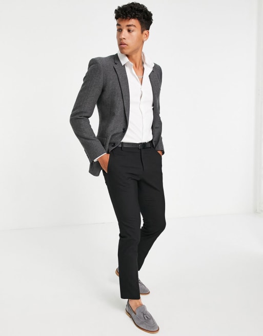 ASOS DESIGN Wedding - Costume en laine mélangée à chevrons - Anthracite