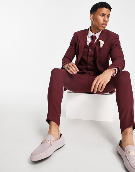 ASOS DESIGN Wedding - Costume super slim micro-texturé - Bordeaux