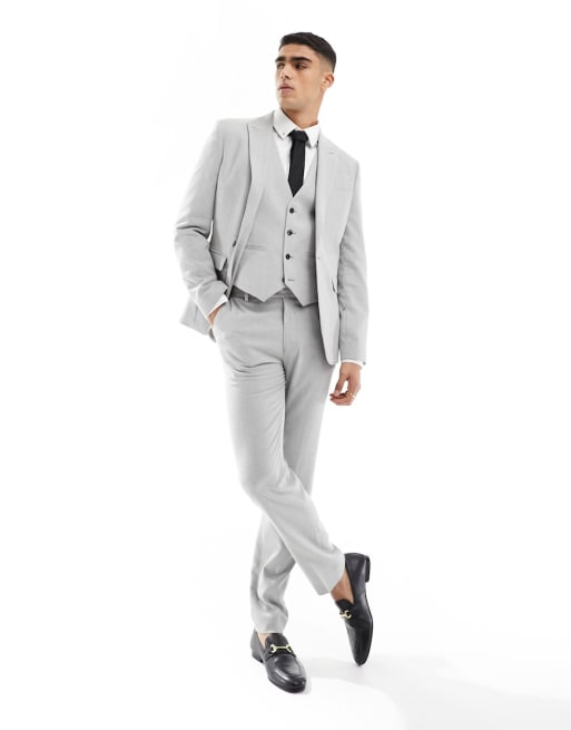 ASOS DESIGN Wedding - Costume ultra ajusté à texture œil-de-perdrix - Gris clair
