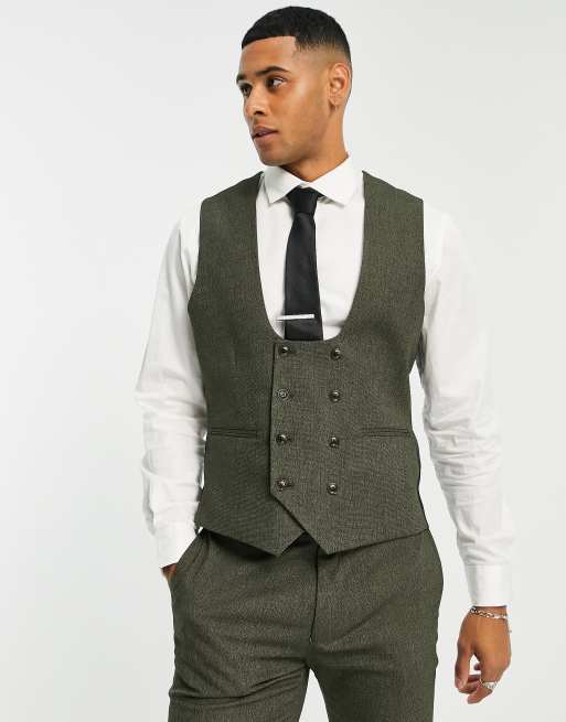 ASOS DESIGN Wedding - Gilet de costume ajusté en tissu micro-texturé - Vert forêt