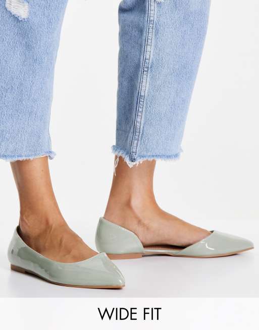 ASOS DESIGN Wide Fit - Virtue - Ballerines d'Orsay plates pointues vernies - Vert sauge
