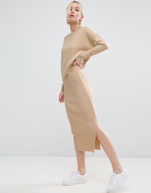 ASOS - Ensemble coordonné en maille avec pull droit et jupe mi-longue
