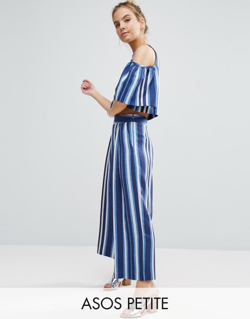 ASOS PETITE - Ensemble top et jupe-culotte à rayures - Bleu