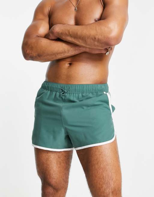 ASOS - Runner - Short de bain coupe ultra courte à stoppeur et ganses contrastantes - Vert