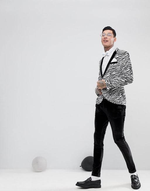 ASOS - Smoking super slim en velours motif zèbre - Noir