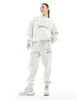 ASOS - Weekend Collective - Ensemble pantalon de jogging et sweat avec logo universitaire - Gris chiné