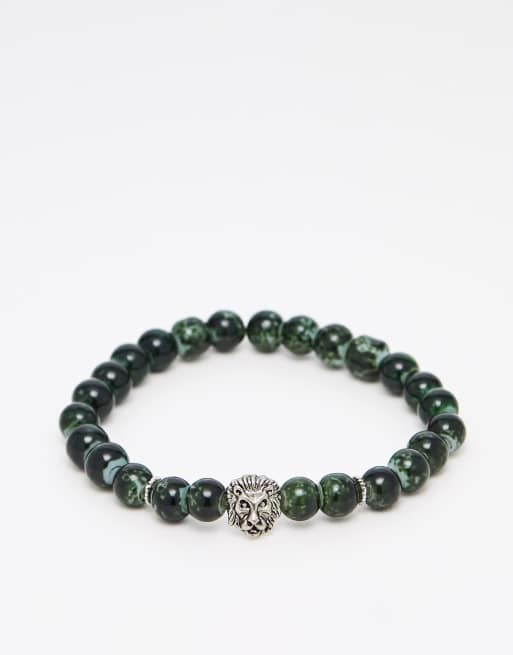 ASOS DESIGN - Bracelet de perles fantaisie style festival avec tête de lion - Vert