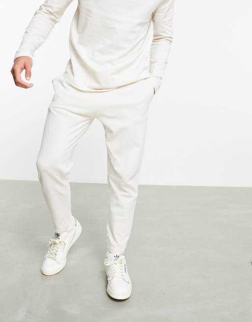 ASOS DESIGN - Jogger fuselé d'ensemble en piqué à ourlets fixes et plis nervurés - Beige