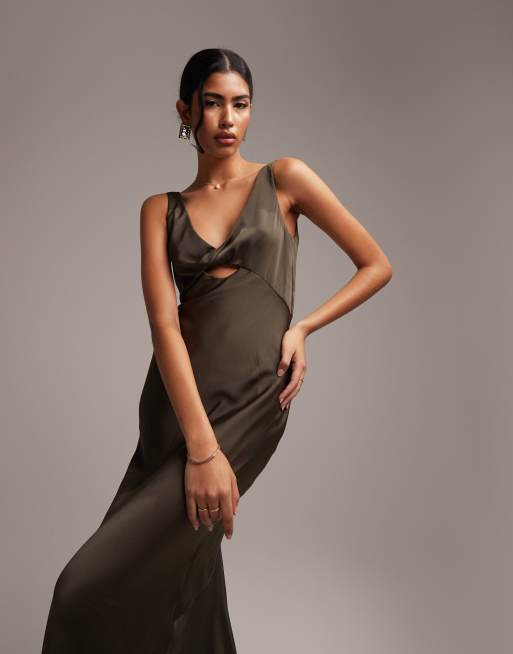 ASOS DESIGN - Robe longue en satin à détail torsadé sur le devant - Vert forêt
